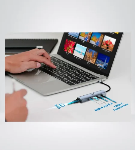 HUB USB-C GENIUS UH-545 GIGABIT ETHERNET 1-USB-C 3-USB-A