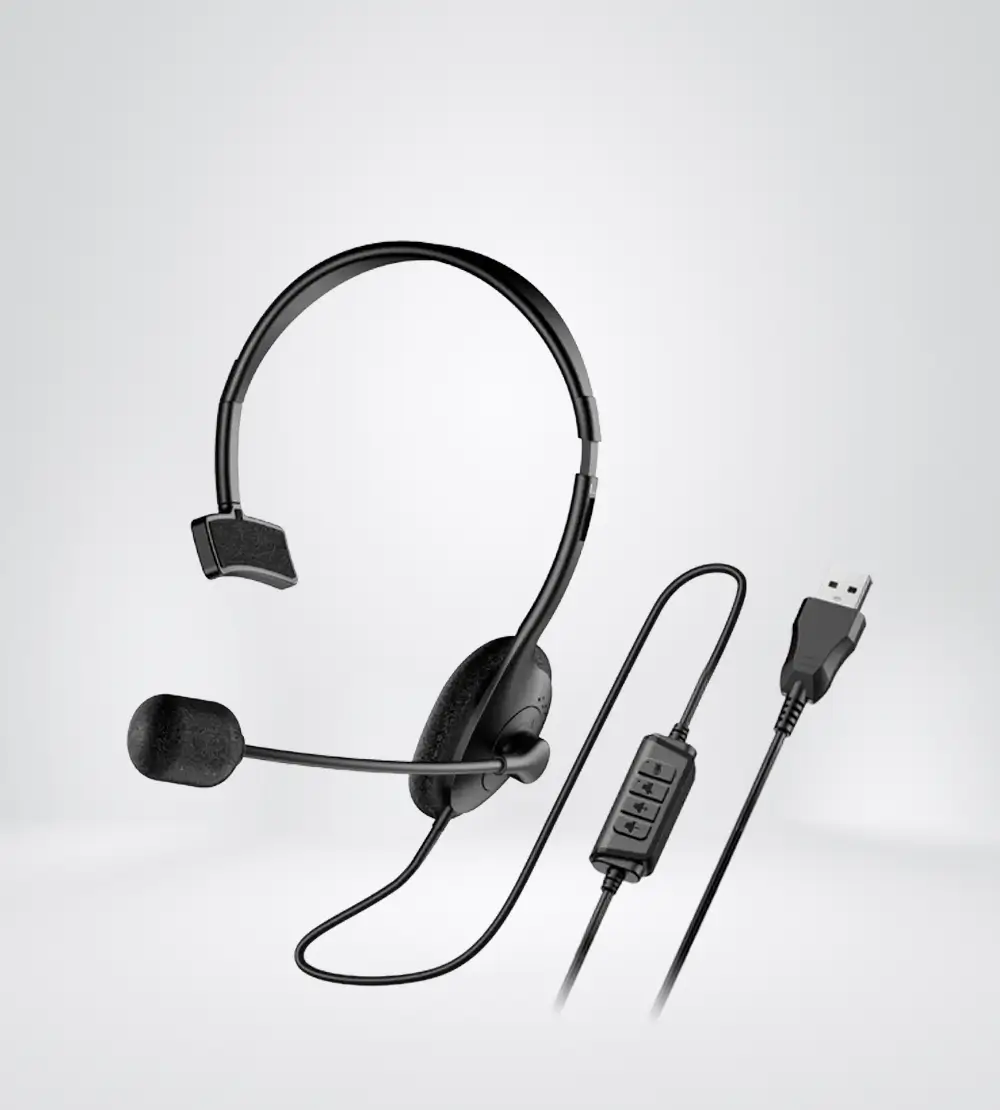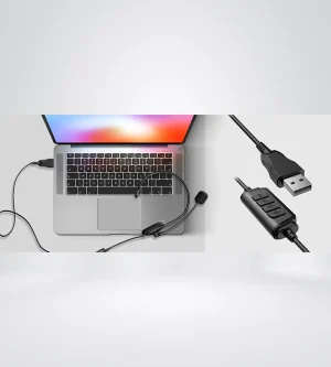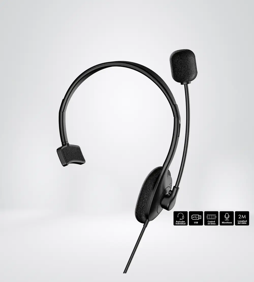 COMODIDAD ligero y cómodo para usarlo durante mucho tiempo. PLUG & PLAY Simplemente conéctelo a un puerto USB para comenzar. ADAPTABILIDAD con su diadema y micrófono ajustables. Control de volumen en línea. Cable de 2 metros de longitud.