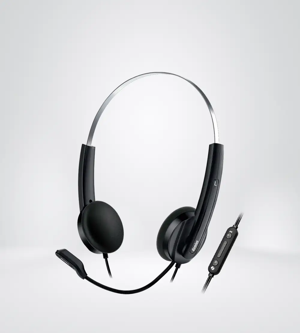 AURICULARES Y MICRO AJUSTABLES fácil de doblar en cualquier ángulo. CONTROL EN LÍNEA para volumen o silencioso. Puedes usarlo en computadoras o portátiles con Windows® o mac®OS / Tabletas o smartphones / Reproductores de MP3.