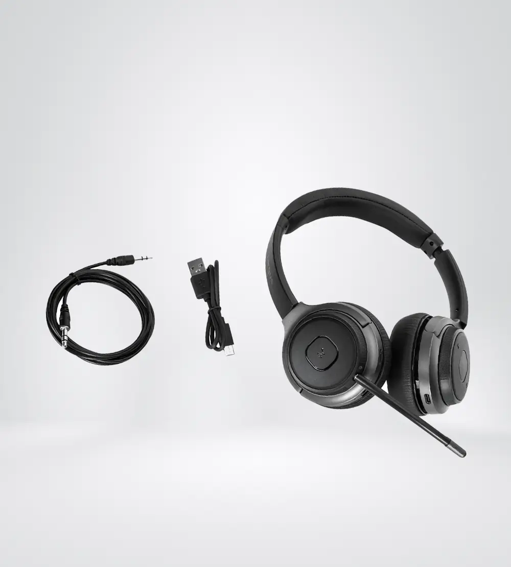 COMODIDAD Con diadema acolchada ajustable, una almohadilla suave al tacto y la comodidad inalámbrica, el auricular estéreo Bluetooth inalámbrico Targus ofrece un ajuste cómodo y seguro para usarlo todo el día. INALÁMBRICO O CON CABLE Empareje sus auriculares con tecnología Bluetooth 5.0 confiable y de ahorro de batería o conéctese a su dispositivo con el cable AUX de 3,5 mm. CONTROLES EN LA OREJA Y EN EL MICRO Suba el volumen (o bájelo) sin quitarse los auriculares. Los botones están convenientemente ubicados en el auricular, por lo que puede realizar ajustes rápidos de sonido al alcance de su mano. Además, conectar y desconectar sus llamadas es fácil usando los controles directamente en el micrófono boom desmontable. SONIDO ESTÉREO OPTIMIZADO Tienen dos altavoces en la oreja para que ambos oídos estén cubiertos. ¿Necesita concentrarse en una tarea en cuestión o escuchar atentamente esa presentación de video? Los auriculares duales también ayudan a bloquear el ruido ambiental.