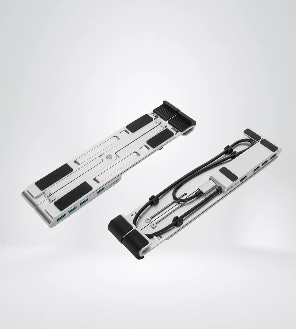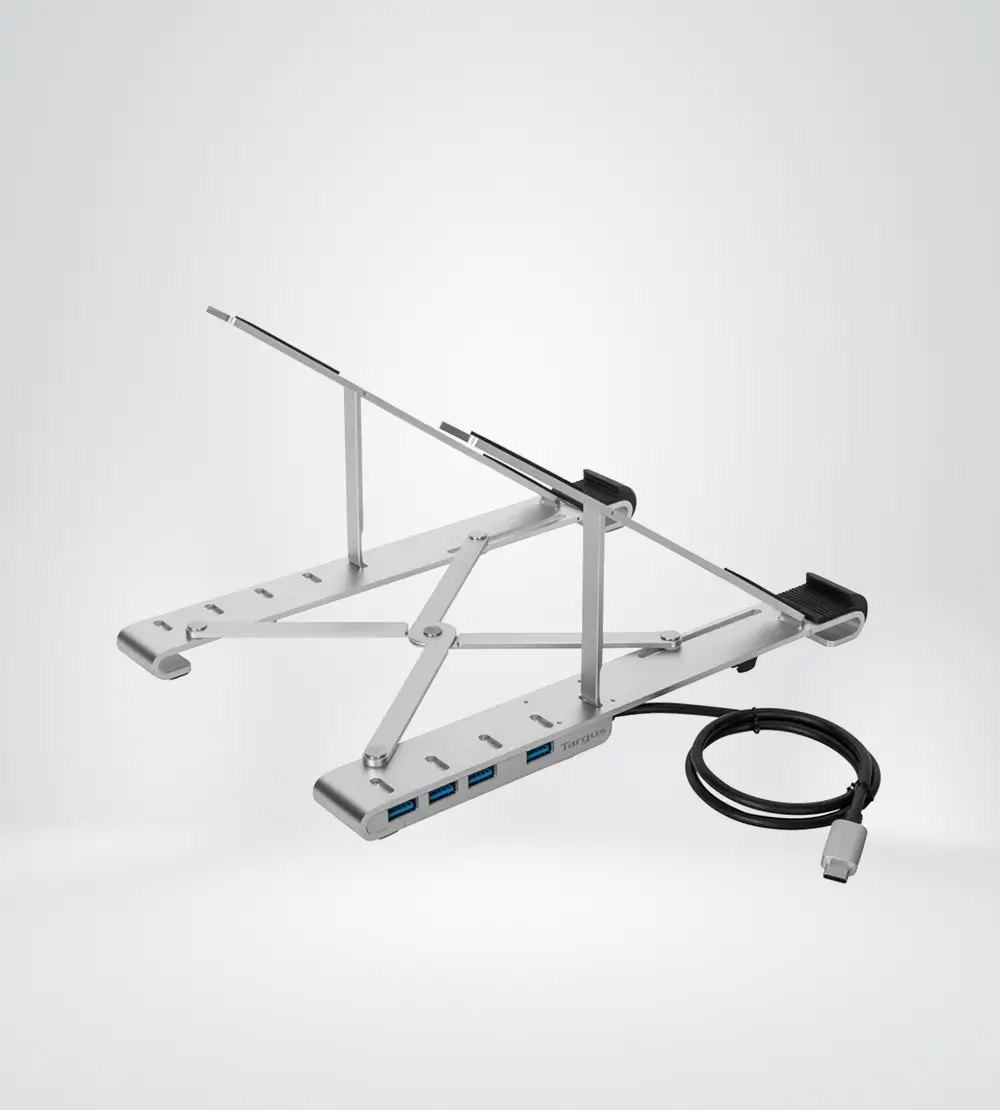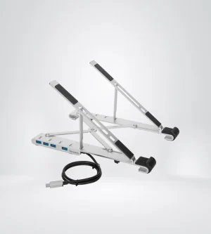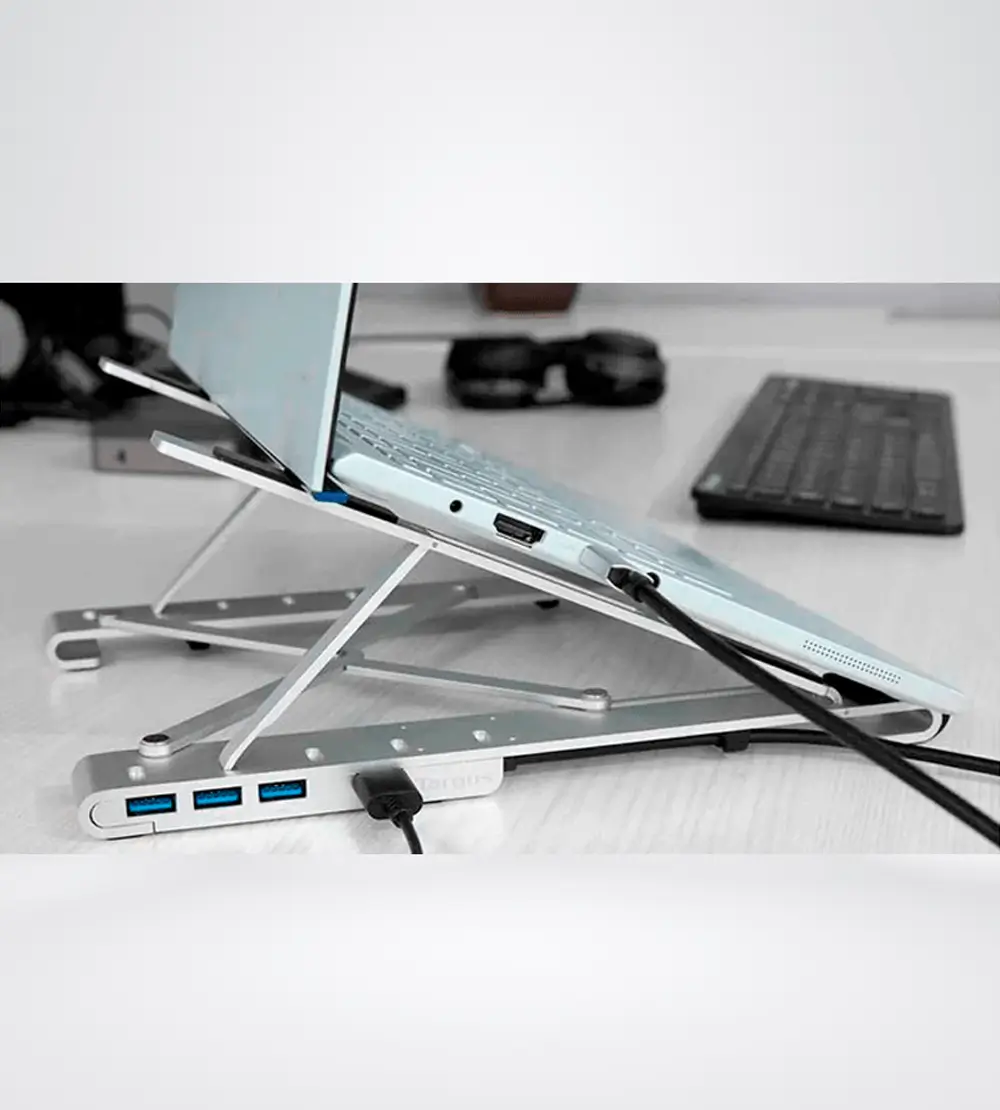 MATERIAL Fabricado en aluminio de alta calidad con gran reducción del calor. COMPATIBILIDAD Versátil y universal, admite la mayoría de los dispositivos portátiles de 10 pulgadas hasta 15,6 pulgadas. PUERTOS Amplía el puerto USB-C de tu portátil con un solo cable a 4 puertos USB-A (3.2 Gen 1). 4x USB-A soportan una rápida transferencia de datos de 5 Gbps, perfecta para unidades flash externas. Los puertos USB-A admiten una carga máxima de 1,5 A para tus accesorios o dispositivos inteligentes (4 puertos USB-A comparten un máximo de 15 W). El puerto USB-C bajo el soporte ofrece una gestión ordenada de los cables de alimentación y admite Power Delivery 3.0 con paso de energía de 100 W. Comparta 100 W de energía entre los dispositivos del portátil a través del cable USB-C y otros dispositivos a través de los puertos USB-A y de datos.