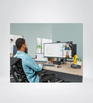 CORRECCIÓN AUTOMÁTICA DE LUZ Siéntete seguro en cada reunión híbrida con una cámara web que aporta personalidad y facilidad a la configuración de tu oficina. Corrección automática de la iluminación y los micrófonos con reducción de ruido aseguran que te veas y suenes claro y natural en cada reunión. AUDIO Asegúrate de que tus colegas escuchen lo que tienes que decir, incluso cuando no cuentes con auriculares ni audífonos. Los micrófonos con reducción de ruido filtran el sonido de fondo y mejoran tu voz para que te escuchen con claridad a ti y no al ruido que te rodea. MODO MOSTRAR para inclinar la cámara hacia abajo y presentar bocetos, trabajos en curso y otros objetos de tu escritorio. Pieza de montaje incluida cuenta con una microventosa que asegura la cámara web a la parte posterior de tu monitor. Descarga Logi Tune de forma gratuita para habilitar el Modo Mostrar. PLATAFORMAS DE REUNIONES Únete fácilmente a una reunión usando tu aplicación de videoconferencia preferida. Compatible con la mayoría de las plataformas de reuniones y aplicaciones de llamadas y cuenta con certificación para el uso con Microsoft Teams, Google Meet y Zoom. PRIVACIDAD Gira la tapa de privacidad integrada para bloquear completamente la cámara cuando no quieres que te vean. Diseñada para proteger tu privacidad.