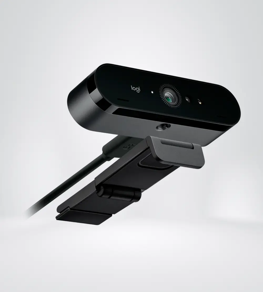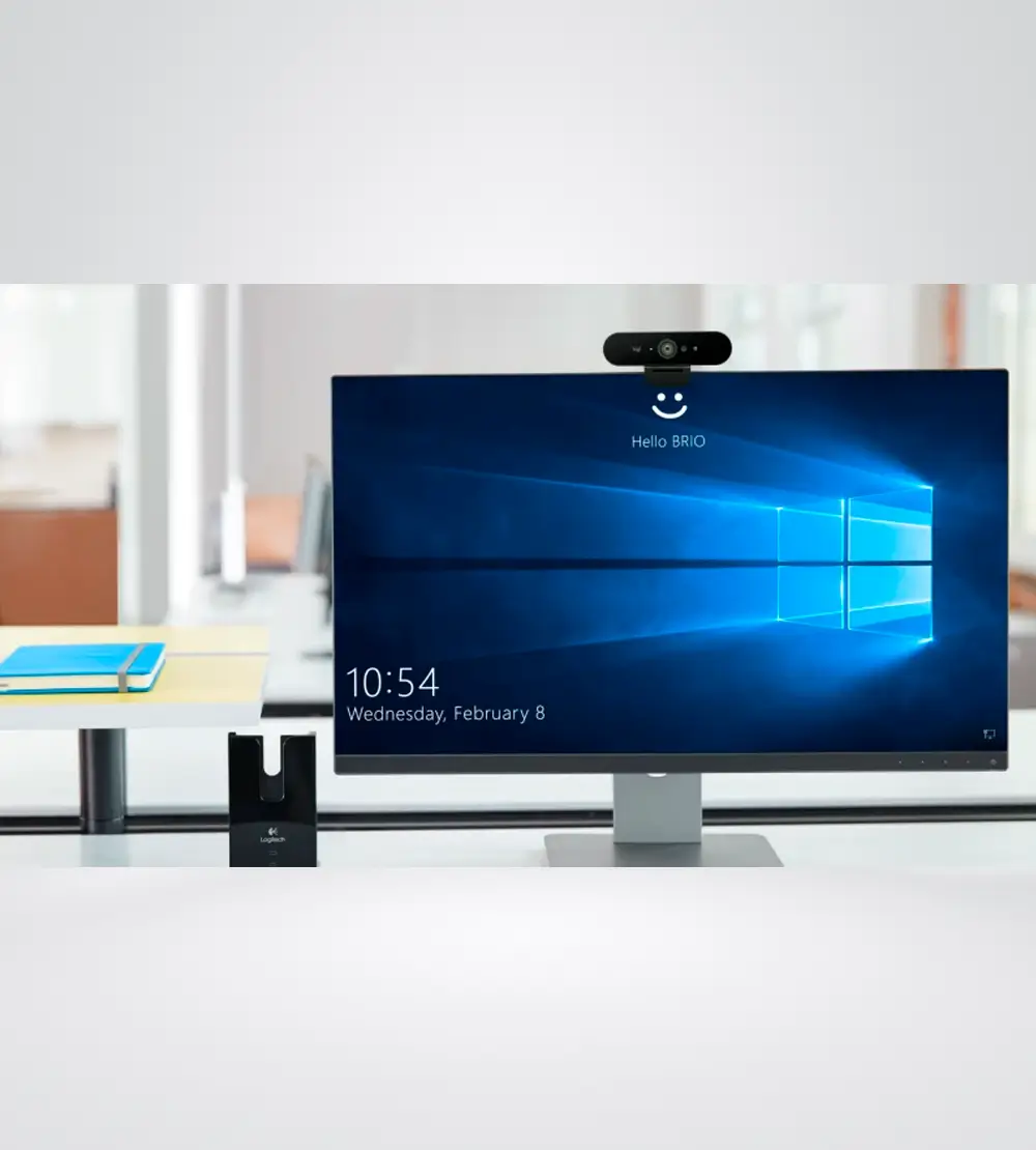 LA CÁMARA WEB IDEAL PARA LAS REUNIONES POR VIDEO Brio está certificada para uso empresarial y, con componentes ópticos integrados y sensores de infrarrojos, es compatible con Windows Hello. LO MEJOR DE LO MEJOR Brio es un excepcional dispositivo que ofrece streaming de video nítido con excelentes prestaciones de resolución, frecuencia de cuadro, colores y detalles, y también funciones de encuadre automático y zoom HD 5x. Brio ofrece video Ultra HD 4K a 30 fps, HD 1080p a 30 o 60 fps y HD 720p a 30, 60 o 90 fps, para obtener un grado extraordinario de nitidez, fluidez y detalle. CAMPO VISUAL AJUSTABLE Para el mejor encuadre de la cabeza y los hombros, selecciona diagonal de 65°. Para abarcar más espacio de la sala, selecciona diagonal de 78° o 90°. OFRECE TÚ MEJOR IMAGEN CON CUALQUIER ILUMINACIÓN Tanto si hay poca luz o un sol radiante retroiluminando el entorno, RightLight 3 y HDR (rango dinámico alto) se ajustan para destacar lo más importante: tú. SUENA PROFESIONAL EN CUALQUIER ENTORNO Brio ofrece dos micrófonos omnidireccionales integrados con tecnología de cancelación de ruido. SEGURIDAD PRÁCTICA No hace falta escribir una contraseña en Windows 10: para iniciar sesión simplemente hay que mirar a la lente de Brio.
