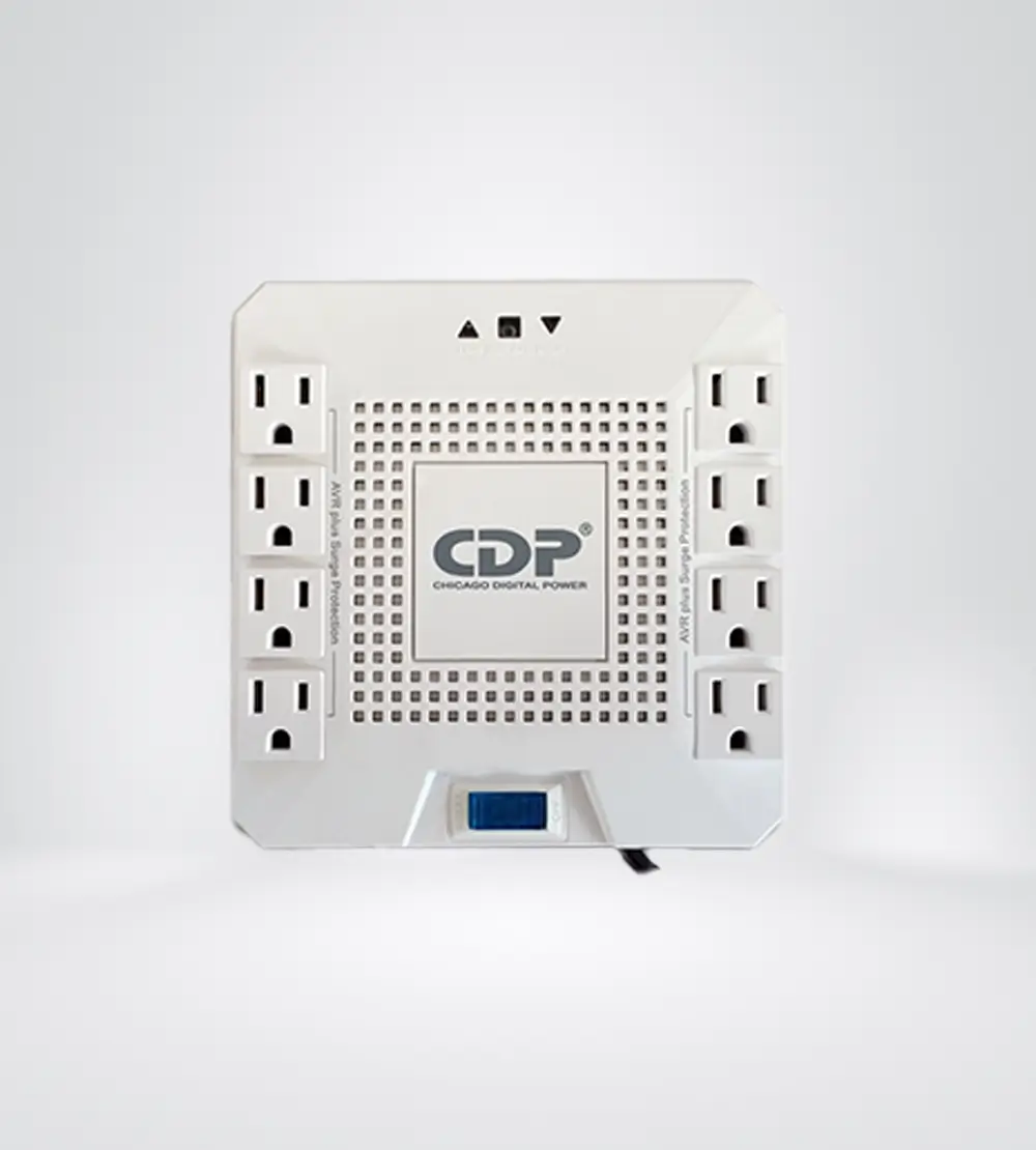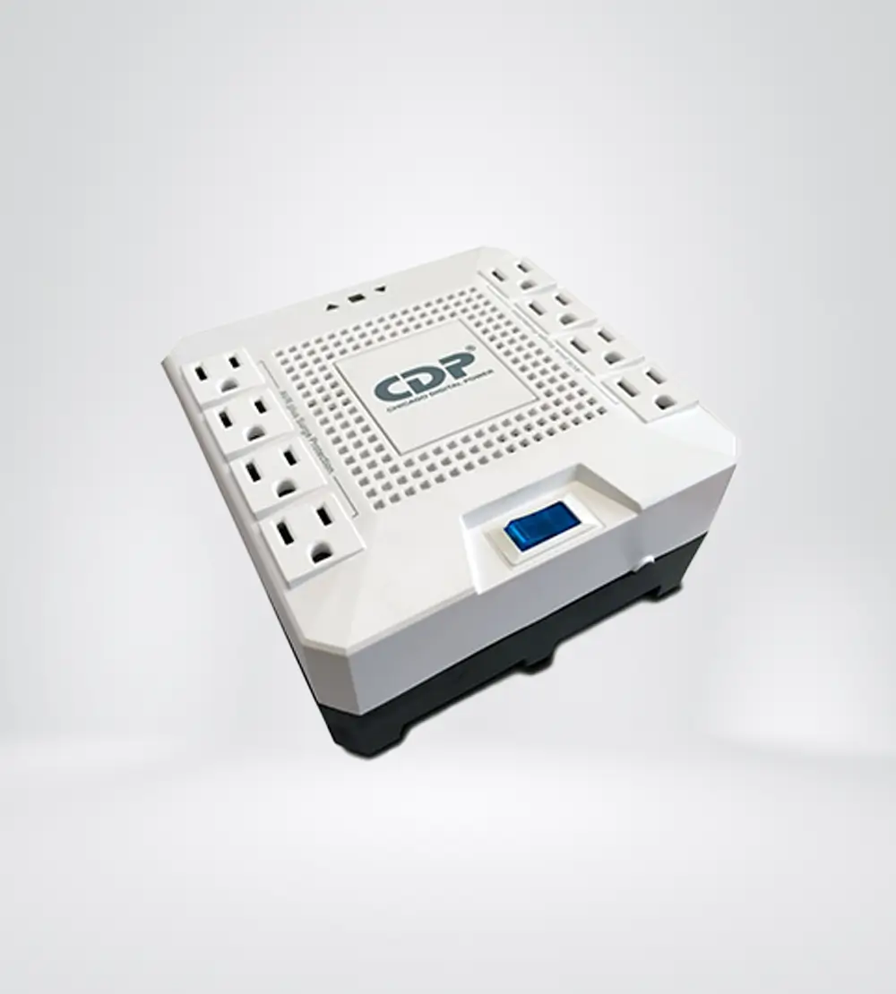 Voltaje automático de 1800 VA regular con potente supresor de sobretensión incorporado y 8 toma corrientes NEMA 5-15 montados en la parte superior con 4 regulados y 4 solo con sobretensión. Protección de interruptor de encendido / apagado y carcasa de plástico anti-flama para su seguridad.