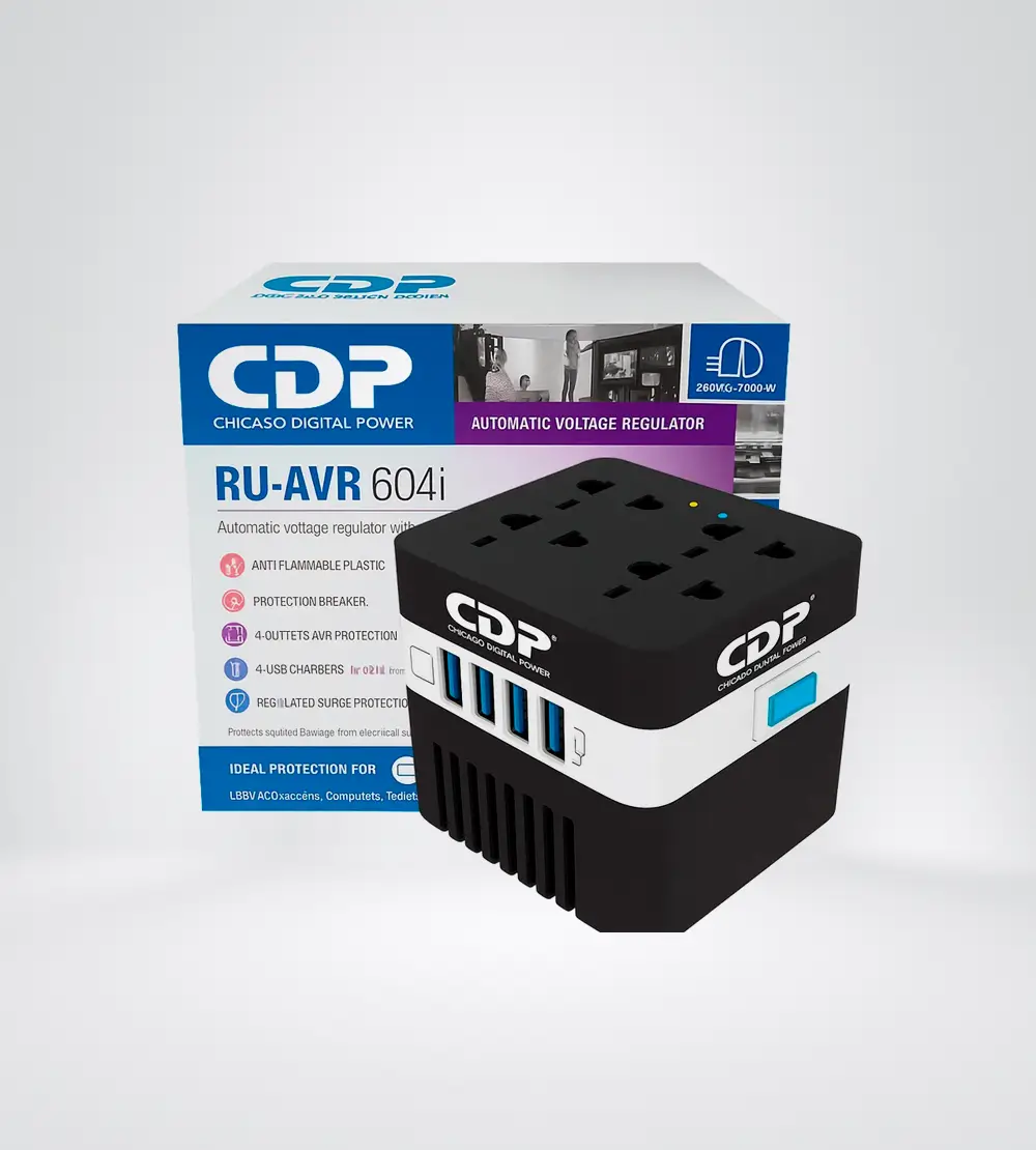 Regulador de voltaje automático de 600 VA con protección contra sobre tensiones y cargador USB de 4 puertos y 4 toma corrientes NEMA 5-15 regulados montados en la parte superior. Mini indicadores LED para potencia y calidad de voltaje de entrada. Disyuntor de sobrecarga combinado de encendido / apagado para proteger la carga y plástico que cumple con UL anti flama para su seguridad.
