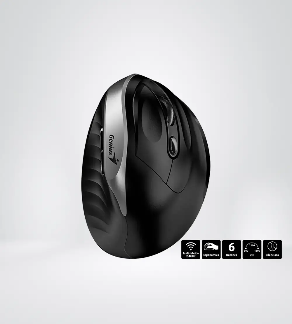 DISEÑO ERGONÓMICO. La postura ergonómica con 57 ° natural reduce la tensión muscular. El ratón silencioso ergonómico vertical inalámbrico permite que tu mano derecha adopte una postura más natural. Esta postura ergonómica natural también alivia la fatiga y la tensión muscular en la zona del antebrazo y el hombro. Diseño de interruptor silencioso que reduce el ruido del clic. Le permite realizar tareas de manera efectiva sin molestar a nadie, ¡disfrute de su trabajo en cualquier momento y en cualquier lugar! Incluye Pila alcalina AA x1.