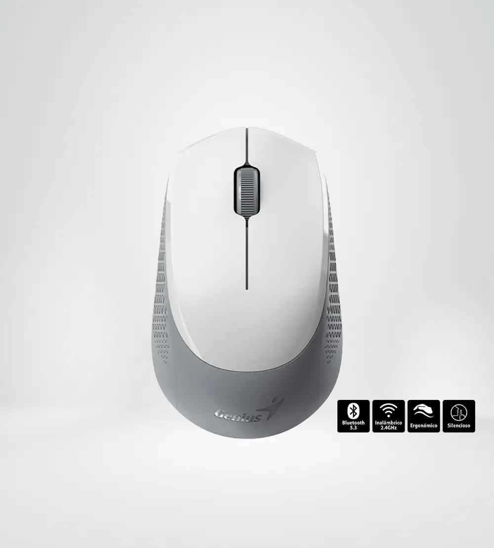 CONEXIÓN Bluetooth 5.3 ó 2.4GHz. TIPO DE SENSOR Ojo azul. RESOLUCIÓN 1200 DPI. NÚMERO DE BOTONES 3 (izquierda, derecha y central con desplazamiento). TIPO DE BATERÍA AA. PESO Aprox. 53 g (incluye receptor). DIMENSIONES 62.8 x 100 x 39.8 mm.