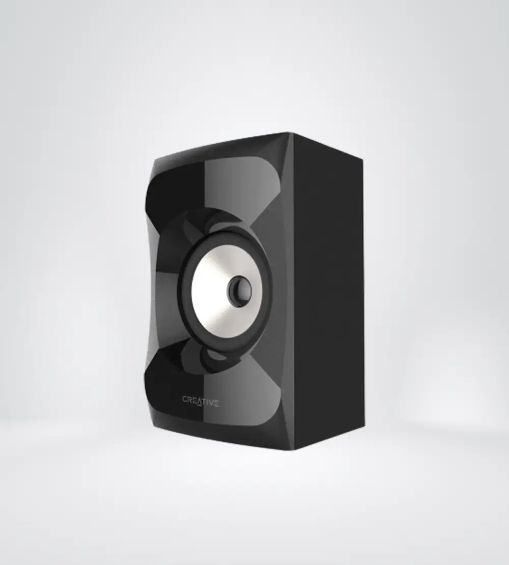 Dimensiones (Largo x Ancho x Alto) Satélite izquierdo: 105 x 100 x 170 mm, Right: 105 x 100 x 170 mm, 170 x 335 x 313 mm. Peso Izquierdo: 488 g, Derecho: 488 g, Subwoofer: 3.16 kg / 6.97 lbs.