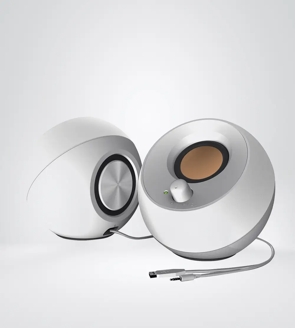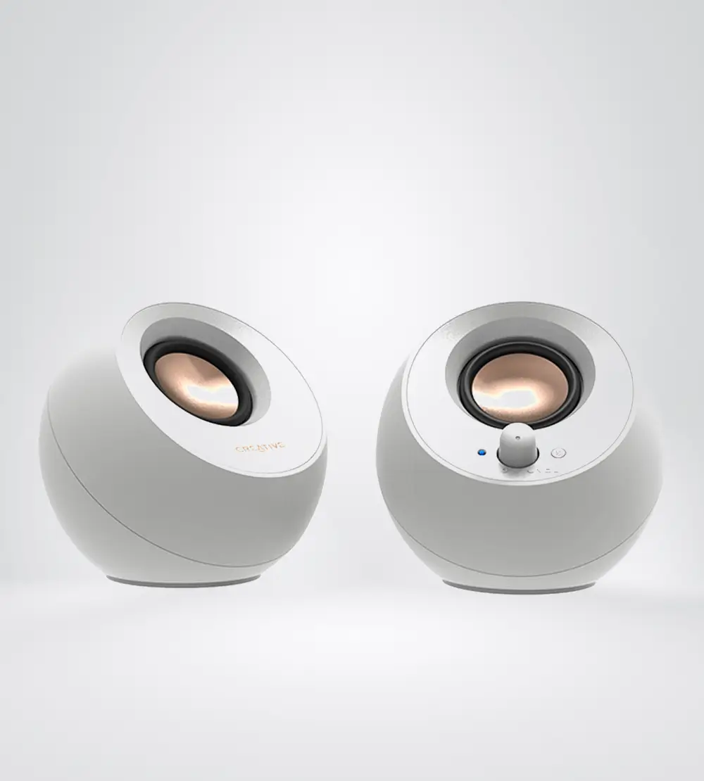 RADIADORES pasivos integrados y una combinación impresionante de RMS de 4.4 W, el pequeño Creative Pebble es capaz de ofrecer audio equilibrado con detalles profundos, de inmersión y cristalinos. Simplemente conecte su dispositivo mediante la entrada 3.5 mm y prepárese para ser sorprendido. Instantáneamente controle su volumen con el conveniente mando de Creative Pebble en el panel de control frontal. Midiendo solo 4.4 pulgadas de anchura cada uno, el Creative Pebble puede colocarse convenientemente junto a su monitor sin comprometer el valioso espacio de su escritorio. Potenciado por un solo cable USB sin necesidad de un enchufe en la pared.