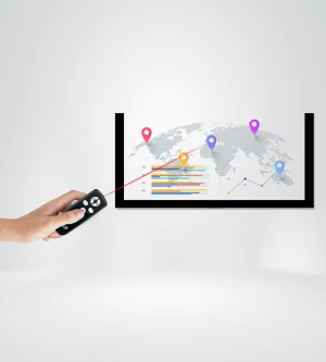 Media Pointer 100 es una herramienta útil cuando tiene que asistir a reuniones, dar una charla, un curso o enseñar durante sus viajes de negocios, con botones de avance / retroceso de página; cambiando la pantalla completa , la pantalla en blanco con solo un clic y el botón de rayo láser.