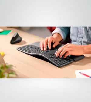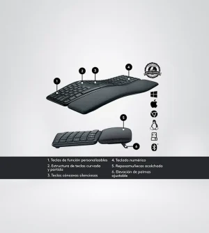 MEJOR POSTURA, MEJORES RESULTADOS El fotograma clave curvo de ERGO K860 coloca sus manos, muñecas, dedos y antebrazos en una postura más natural; notará la falta de tensión en el momento en que sus manos toquen el teclado. Incluso se ha demostrado que ERGO K860 reduce la actividad muscular en un 21% en el músculo trapecio superior. TRES CAPAS DE COMODIDAD Y SOPORTE 1. CAPA DE SUPERFICIE 0,5 mm de TEJIDO DE PUNTO con un revestimiento duradero, resistente a las manchas y fácil de limpiar que es suave al tacto. 2. CAPA DE SOPORTE: ESPUMA DE ALTA DENSIDAD de 2 mm que proporciona una sensación cómoda y firme que dispersa la presión por igual. 3. CAPA CONFORT 4 mm de MEMORY FOAM ofrece una entrega agradable y personalizada, mejorando la sensación de comodidad y relajación. ELEVADOR DE MUÑECAS Mantenga sus muñecas en una postura natural y cómoda, ya sea sentado o de pie con una innovadora función de levantamiento de la palma de la mano. Inclina las piernas de 0 °, -4 ° y -7 ° y levanta las palmas de las manos hasta la posición ergonómica óptima según tu configuración única. TECLAS DE CARRERA PERFECTAS Una experiencia de escritura fluida y ultraprecisa sin comprometer la velocidad y la precisión.