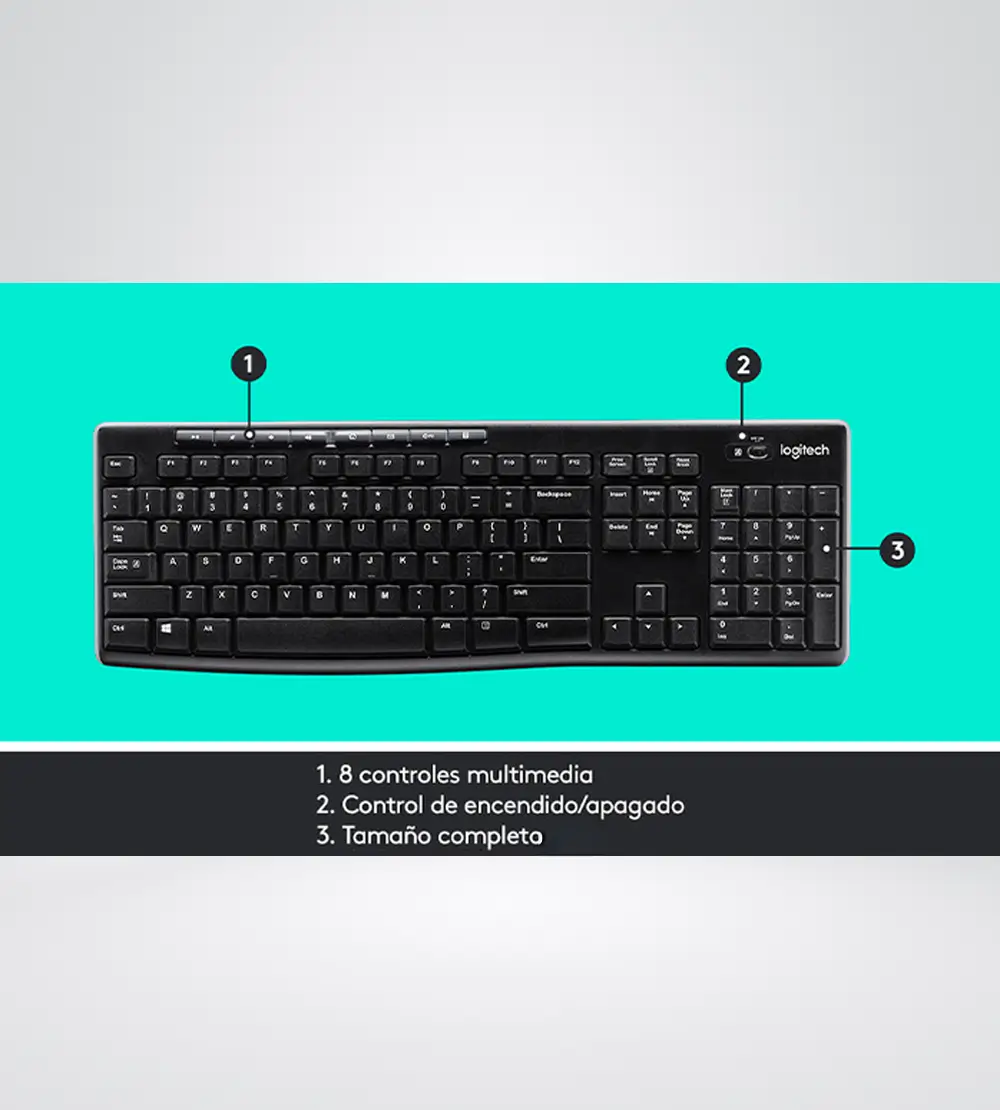 INALÁMBRICO Y ESENCIAL. Equipado con sección numérica y todas las teclas de acceso rápido que necesitas. CONFORTABLE Y EFICIENTE. DISEÑO DURADERO con los mismos altos estándares de calidad y confiabilidad que han hecho de Logitech el líder mundial en mouse y teclados. Con una duración de baterías de 24 meses. Conmutador de encendido/apagado y tecnología de ahorro de energía contribuyen a conservar la carga. DISEÑADO PARA RESISTIR a prueba de salpicadura y los caracteres impresos resistirán años de uso, a pesar de los contratiempos cotidianos. GRATA SENSACIÓN DE ESCRITURA ofrece una experiencia de escritura familiar, con teclas cóncavas y rápido retorno elástico. SIMPLICIDAD INALÁMBRICA Plug and Play. Robusta y confiable de 10 GHz con un radio de acción de 10 m. Con un receptor USB Logitech Unifying que te permite emparejar hasta seis dispositivos Logitech compatibles, con la posibilidad de añadir tu mouse Logitech al mismo receptor. Menos cables, menos complicaciones y un sencillo flujo de trabajo.