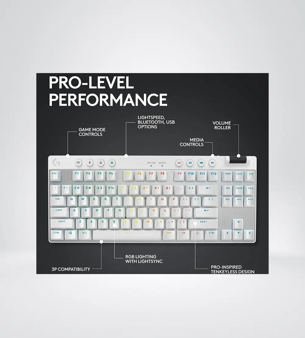 TECLADO LOGITECH PRO X TKL LIGHTSPEED WIFI|BT|USB WHITE