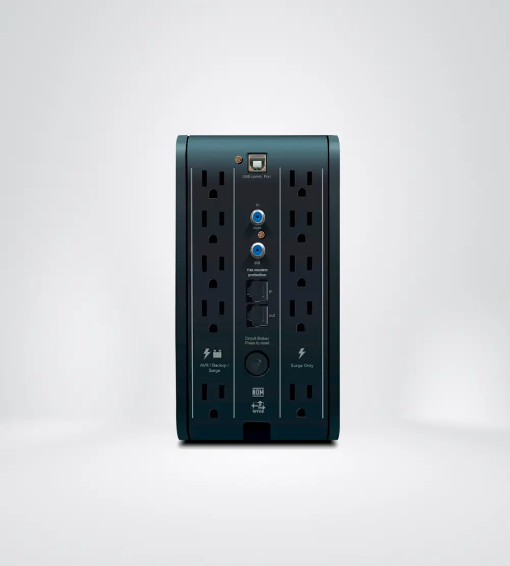 UPS interactivo de línea de 1000VA para hogar / oficina. Baterías de plomo-acido selladas internas, regulador de voltaje, supresor de sobre tensión y salidas de derivación para cargas más grandes. Proporciona energía continua a enrutadores WIFI, sistemas de alarma y equipos informáticos. Los modelos de mayor capacidad en torre ofrecen una pantalla LCD avanzada que es interactiva e ilustra funciones como niveles de batería, % de carga, % de batería, voltaje de entrada, voltaje de salida, Hz. Las interfaces web permiten el monitoreo local y remoto. Las alarmas audibles indican el funcionamiento y los niveles de batería. Certificado por las agencias reguladoras NOM, ISO9001-2015, ISO14001, RETIE.